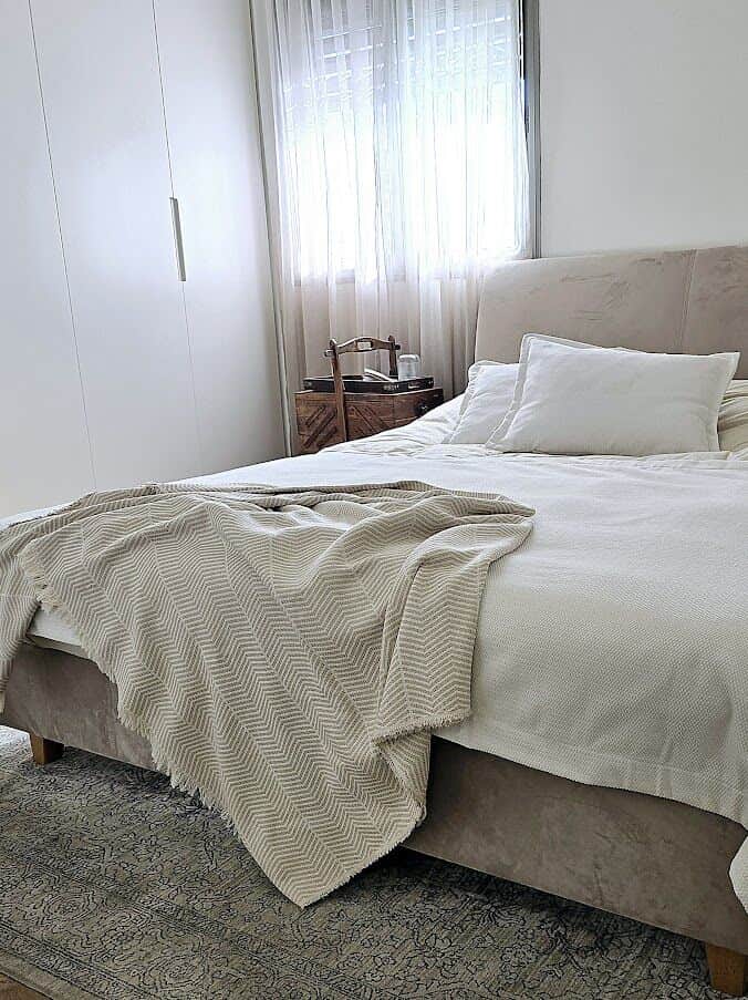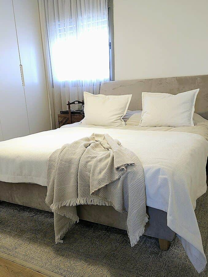 סט מיטה דגם פוג'י בצבעי לבן שמנת
