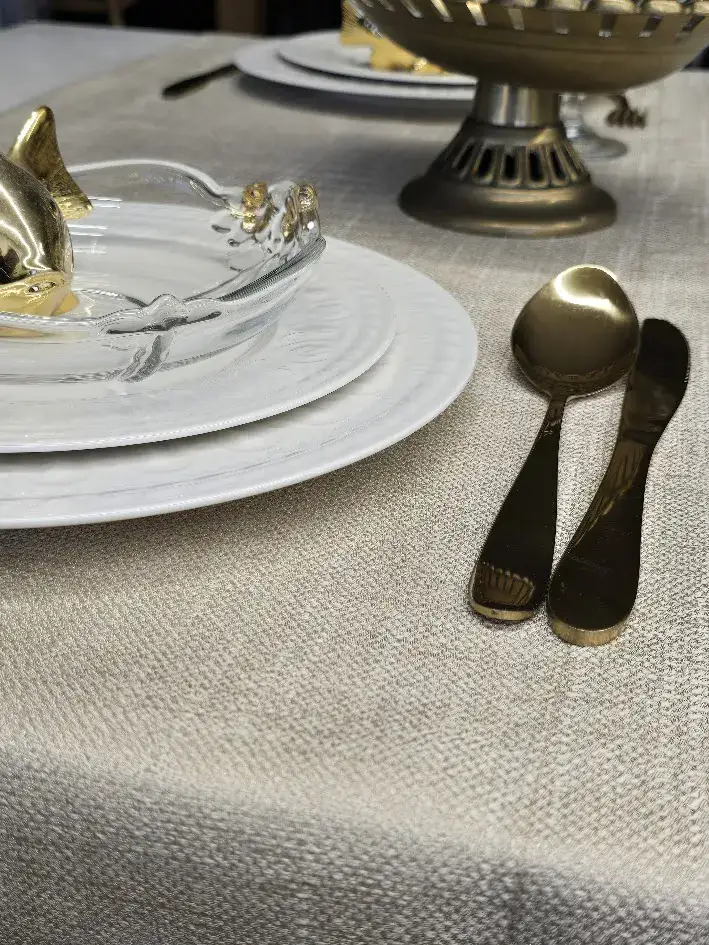 רנר לשולחן סטיטצ' בד דמוי פשתן רקום תפורים בסגנון מדרני