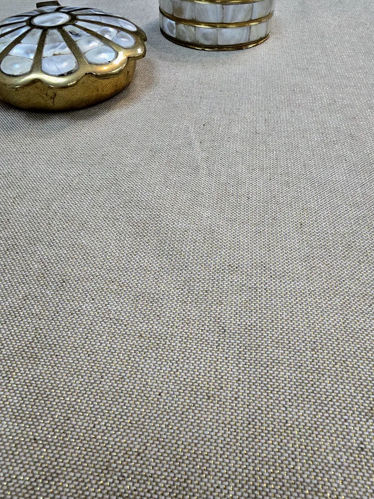 מפת שולחן מסוג טפלון במראה פשתן שזור חוטי זהב אלגנטי לשןלחן חג ואירוח רוחב 1.40
