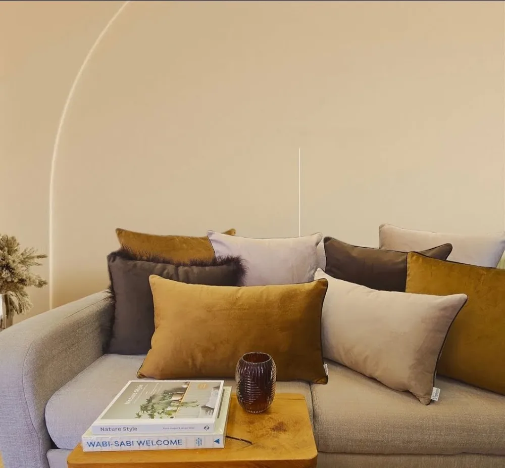 מערך כריות קטיפה בגווני סהרה כולל קדר בתמונה 8 כריות